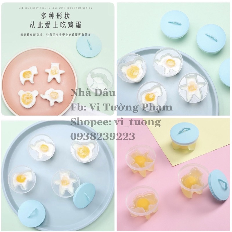 Khuôn hấp trứng, làm bánh cho bé (bộ 4 khuôn tặng kèm chổi silicon quét dầu) free ship